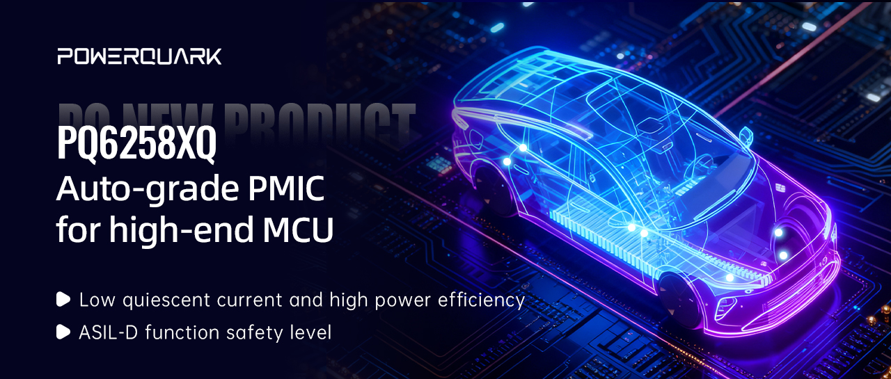Powerquark has introduced a new high-end automotive-grade MCU PMIC PQ6258XQ, designed to provide efficient and stable power support for MCU core in systems such as domain controllers, body control modules, powertrains, and ADAS. PQ6258XQ has obtained ISO26262 ASIL-D functional safety certification and AEC-Q100 certification. It features low static current and high energy efficiency, supporting the diverse functions of high-end MCUs in automotive systems.